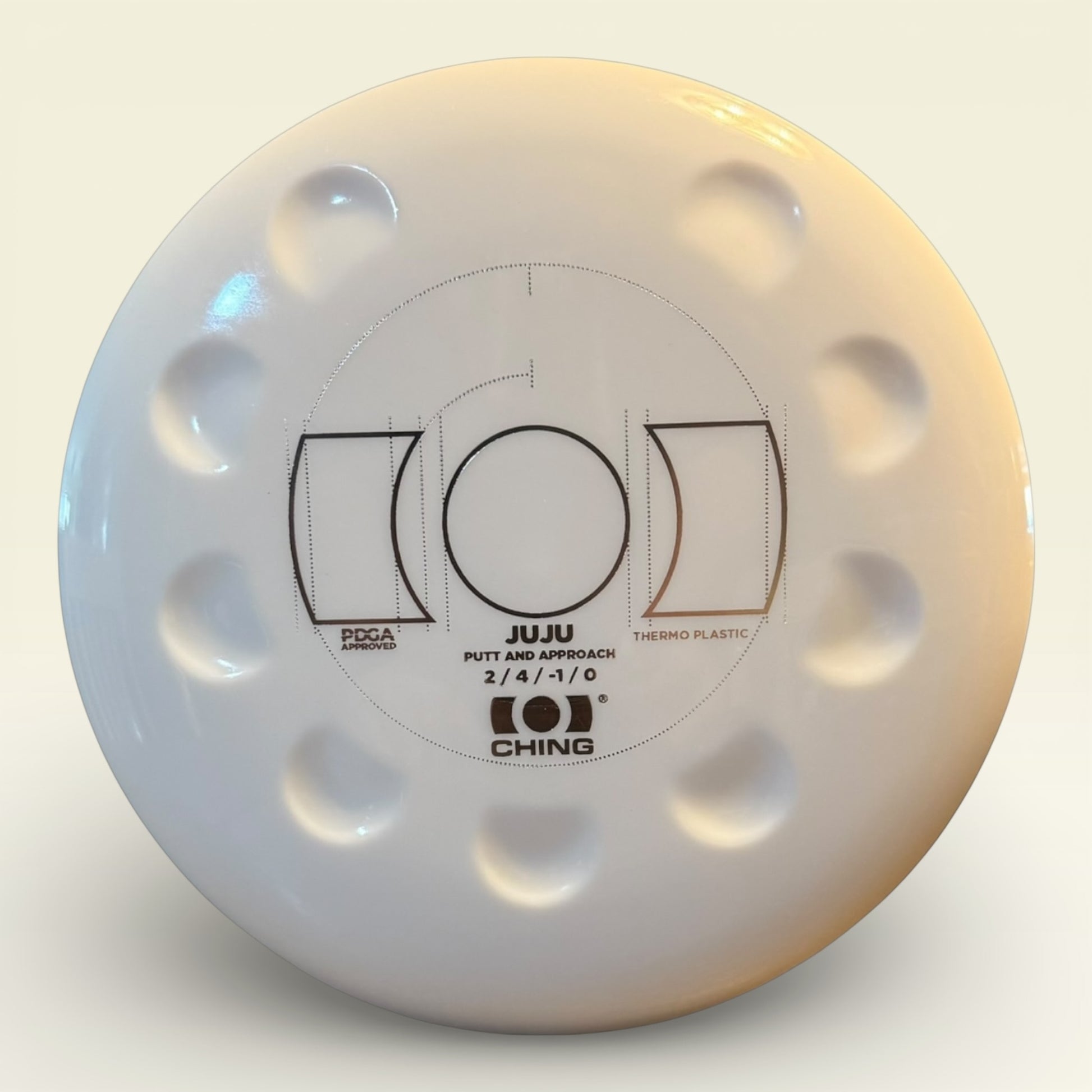 The Juju is an ultra-straight putter. It has innovative thumb tracks around the rim that allow you to adjust your grip in order to adjust the flight of the disc. Like the Precision midrange, the thumb tracks are located at different levels along the rim, and an empty slot is left for when the thumb track is not needed. The Juju is a very beginner friendly disc for those who are new to the game and who are learning how to properly grip putters.